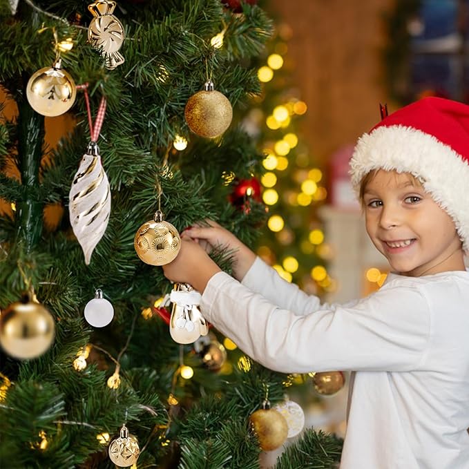 - Elegant Christmas Tree Decor – This set of 130 Christmas ball ornaments brings festive charm and elegance to your tree, creating a warm holiday atmosphere throughout your home