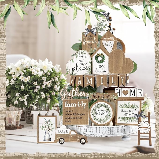 - Ideal farmhouse decor: Featuring many classic farmhouse elements such as family, truck, love heart, and more, these delightful kitchen tiered tray decor creates a retro and traditional farmhouse atmosphere in your home