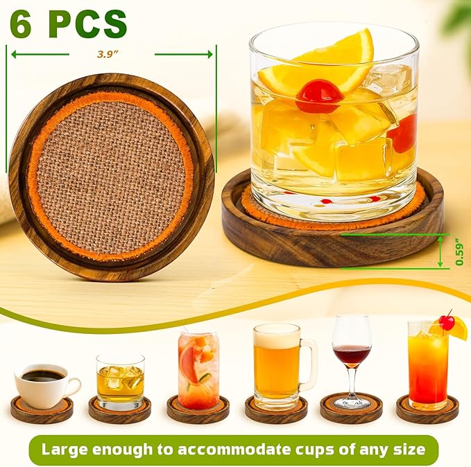 - NEAT & ORGANIZED – Includes a matching wooden holder that keeps all 6 coasters stacked neatly in one place, adding rustic style to your table.