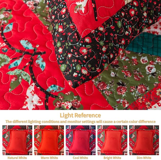 - 【Elegant & Durable】 This king size Christmas quilt (98"x106" quilt + 20"x36" pillowcases) features floral motifs with triple-layer reinforced stitching to prevent filling shift and ensure lasting durability.