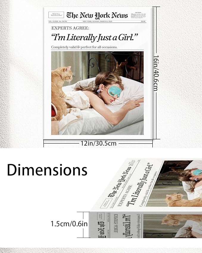 Trendy Newspaper Style Wall Art 12x16, Audrey Hepburn Magazine I'm Literally Just a Girl Canvas Wall Art Home Decor Aesthetic Prints Painting Retro Set of 1 for Bedroom Dorm Decor Ready to Hang