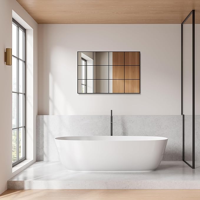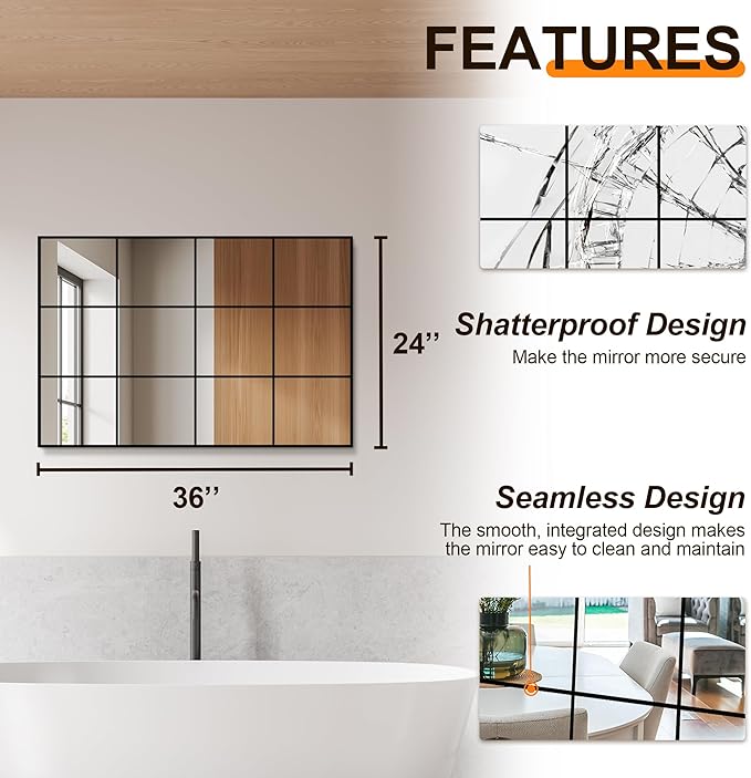 - Seamless Grid & Integrated Look:The innovative seamless grid design gives this window pane mirror a sleek, one-piece appearance, enhancing any space with its elegant yet functional aesthetic. The window pane mirror wall decor and mirror decorative wall art add a unique flair to your space, creating a centerpiece in any living room or dining room.