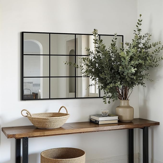 - Modern & Industrial Styles: Ideal for homes with modern or industrial decor themes, the Delma window pane mirror adds both style and practicality to your living space, reflecting light and creating a sense of openness. Its versatility makes it perfect for various spaces, from bedrooms to living rooms, where a large decorative mirror or window pane mirror wall decor might be needed.