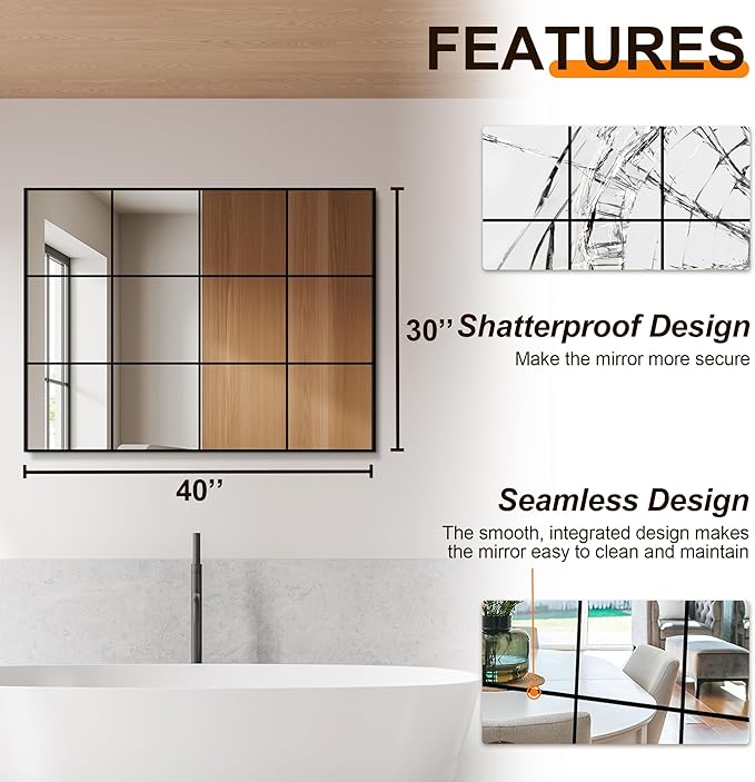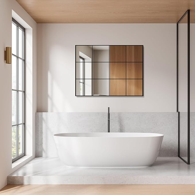 - Seamless Grid & Integrated Look:The innovative seamless grid design gives this window pane mirror a sleek, one-piece appearance, enhancing any space with its elegant yet functional aesthetic. The window pane mirror wall decor and mirror decorative wall art add a unique flair to your space, creating a centerpiece in any living room or dining room.