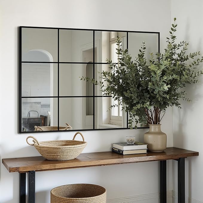 - Modern & Industrial Styles: Ideal for homes with modern or industrial decor themes, the Delma window pane mirror adds both style and practicality to your living space, reflecting light and creating a sense of openness. Its versatility makes it perfect for various spaces, from bedrooms to living rooms, where a large decorative mirror or window pane mirror wall decor might be needed.