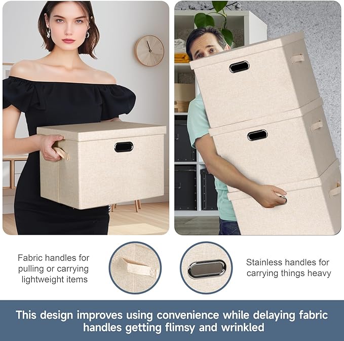 - ✅[Constant Use] Covered by thick textured cloth, our large lidded storage bins prevent daily wears and tears. They can keep dust and bugs out also, avoiding dirt and musty smell. You can use these decorative storage boxes with lids everyday or for long term storage.
