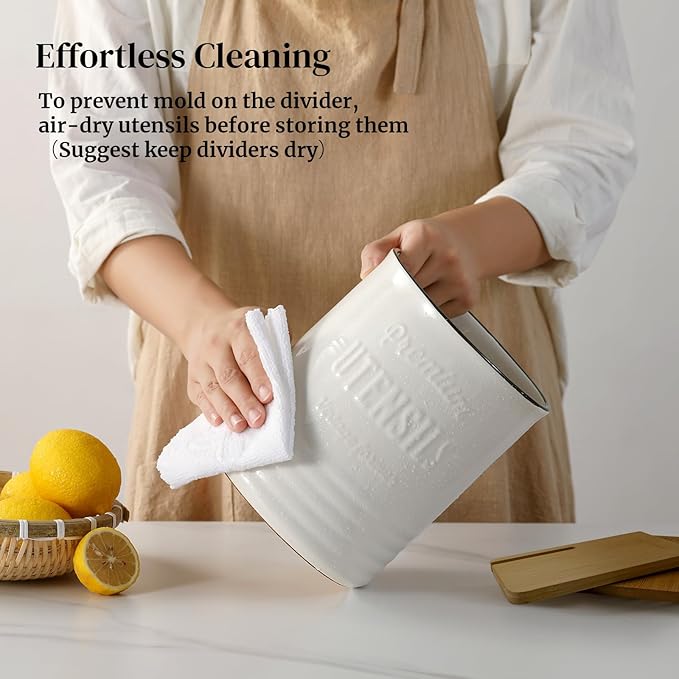 - Large Ceramic Cooking Utensil Holder: Measuring 7.2" high and 6.2" wide, this generously sized container holds 15–20 kitchen tools with ease. Perfect for spoons, whisks, spatulas, and more, it neatly stores utensils from 10" to 16" in length, keeping your essentials organized and within easy reach