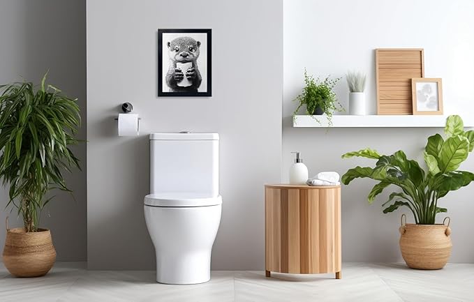 Minimalist Bathroom Wall Decor, Otter Wall Art for Grabbing Toilet Paper, Hilarious, Funny Bathroom Animal Art Black and White Canvas Print Painting can be Hung Directly Frame 16 "x 20"