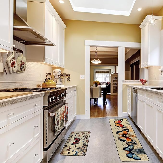 - Proper Size: the butterfly kitchen towels measure 15.75 x 23.62 inches, the kitchen rugs are 31.5 x 19.69 inches and 47.24 x 19.69 inches, the pot holders are 7.09 x 7.09 inches, and the oven mitts are 6.69 x 10.63 inches, fitting well in various kitchens