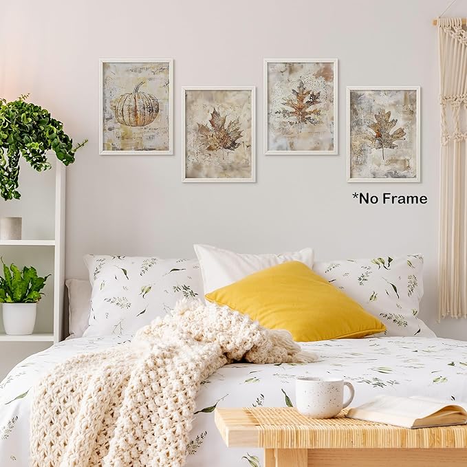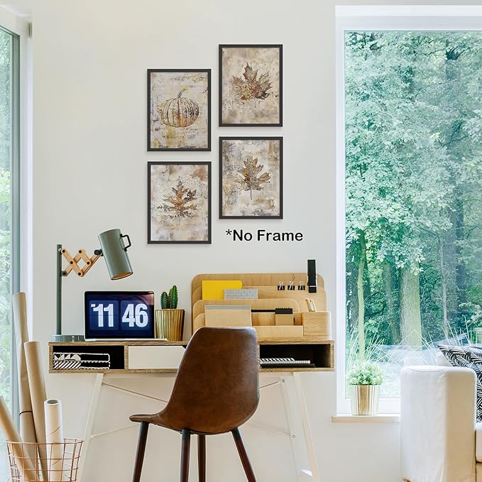 TLESKE Vintage Fall Leaves Posters Prints Unframed 12x16 Set of 4, Autumn Rustic Maple Oak Leaf Wall Art Prints Decor for Farmhouse Bedroom Living Room, Thanksgiving Wall Pictures