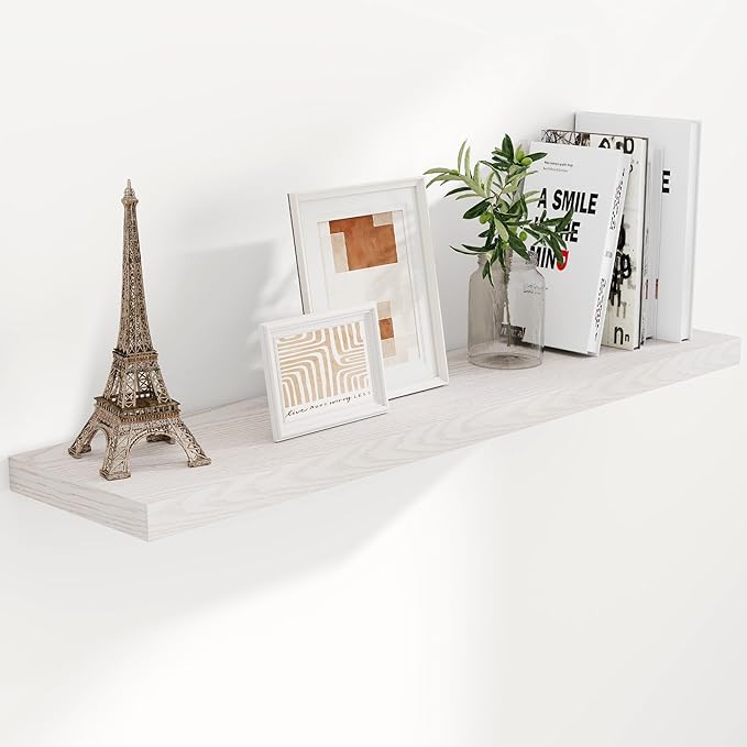 - 【9 INCH DEEP FLOATING SHELF】This extra deeper and thicker wall shelves are 9.3 inches in depth and 1.5 inches in thickness instead of the regular narrow floating shelves, you can put photos, pictures, DVD players, videos, books, toys, and some other knickknack on this beautiful display wooden shelf.