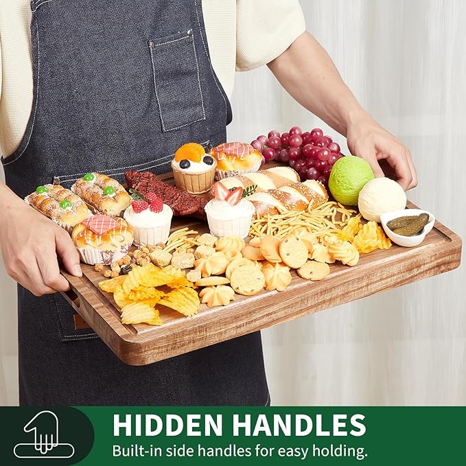 Garvee Acacia Wood Cutting Board for Kitchen, 20"x15"x1.38" Large Wooden Chopping Board, Reversible Wooden Butcher Block with Deep Juice Groove and Side Handle for Meat, Vegetables, Cheese, Fruit