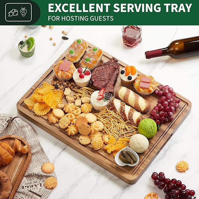 - Premium Acacia Wood: Crafted from durable and beautiful acacia wood, this cutting board offers a sturdy and long-lasting surface for all your kitchen prep needs.