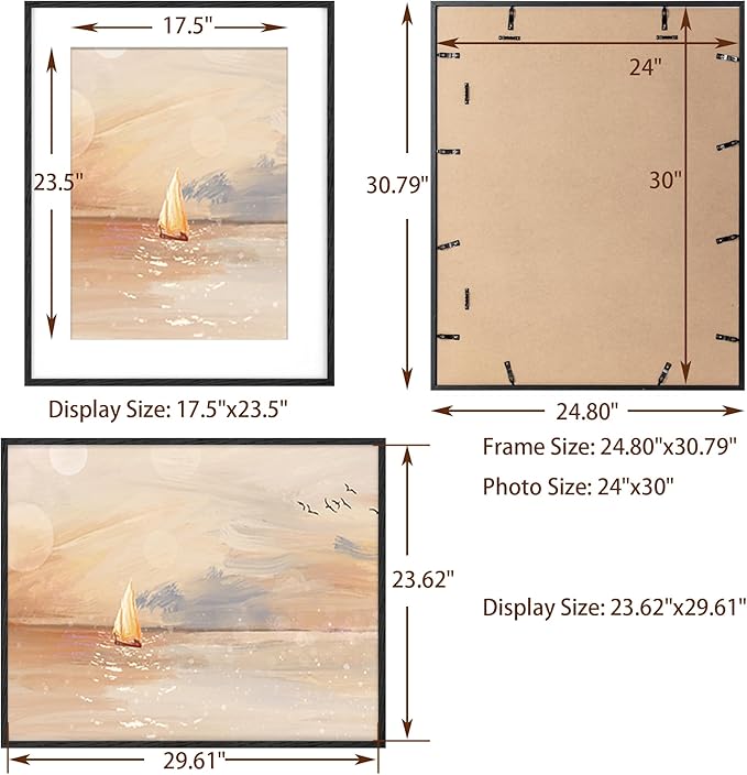 - NATURAL SOLID OAK WOOD FRAME - This 24x30 picture frame is made of high-quality 100% solid oak wood, the natural wood grains on this real oak wood picture frame lends it an authentic look. This poster frame comes with 1.2mm ivory mat for visualizati on purposes, and 24 x 30 frame with mat for 18 x 24