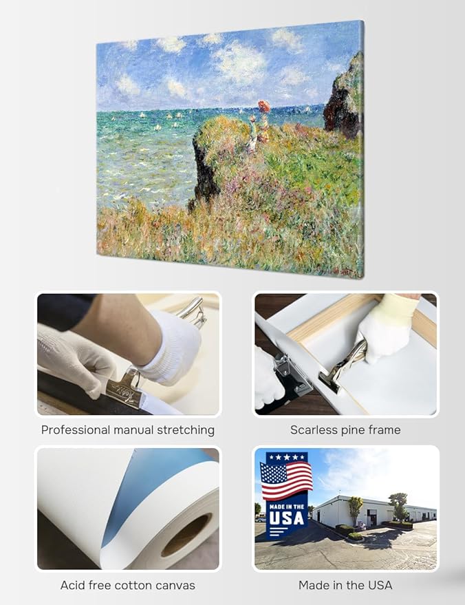 - Monet's Coastal Stroll - Claude Monet Walk on the Cliff at Pourville captures a sunlit day by the sea, filling your wall with coastal charm and timeless impressionist beauty.