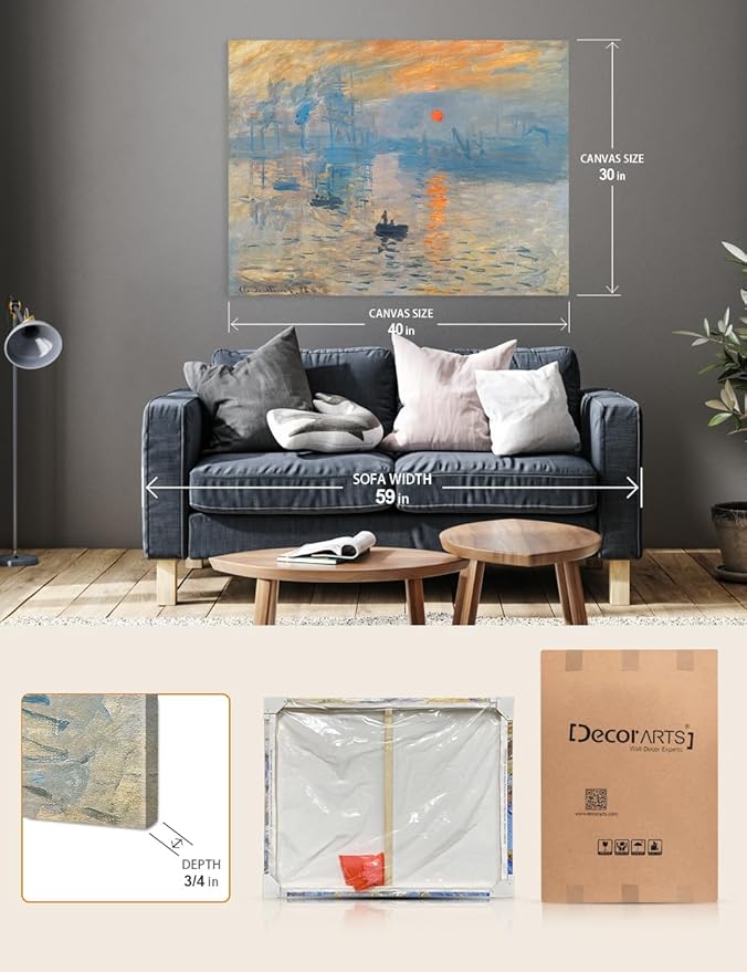 - Awakening of Light - With vivid strokes and glowing hues, Claude Monet captured the rising sun over Le Havre harbor. This canvas brings warmth, serenity, and artistic charm to your home decor.