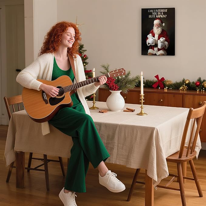 FITIE Black Santa Bathroom Christmas Canvas Wall Art Poster, Funny Humorous Holiday Winter Christmas Framed Artwork Prints Wall Decor for Bathroom Washroom Restroom Toilet, 11x14 Inch