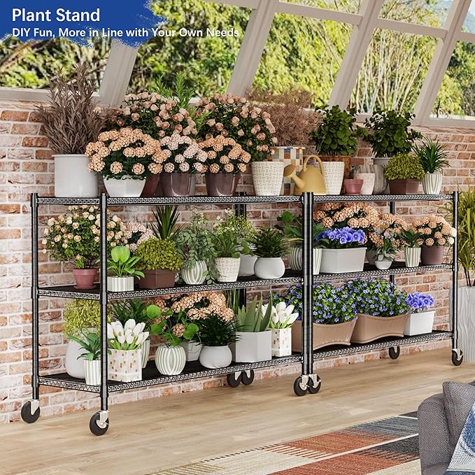 - 【Heavy Duty Shelving with 2500LBS Load Limit】Our garage shelving is built with thickened carbon-steel and reinforced metal rods, delivering exceptional strength. Each level holds up to 600 lbs on adjustable feet, with an overall load limit of 2500 lbs (600 lbs on wheels). Perfect for garage storage, warehouses, and commercial applications.