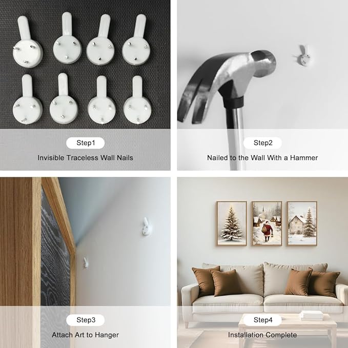 - Premium Quality & Ready to Hang: These 24×36 inch Christmas prints, each panel comes pre-stretched on a sturdy wooden frame with built-in hanging hardware, so you can effortlessly transform your living room, bedroom, mantel area, or entryway in minutes—no extra tools needed!