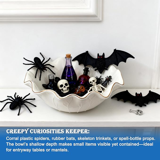 - Creepy Curiosities Keeper: Corral plastic spiders, rubber bats, skeleton trinkets, or spell-bottle props. The bowl’s shallow depth makes small items visible yet contained—ideal for entryway tables or mantels.