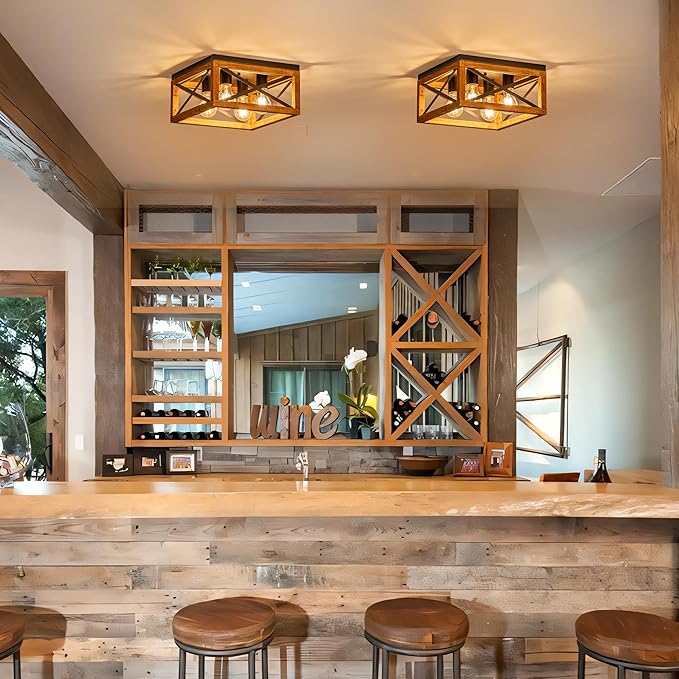- Farmhouse Rustic Design – Featuring a natural solid wood frame with black metal cross accents, this square flush mount ceiling light adds a warm rustic charm and modern farmhouse style to any space.
