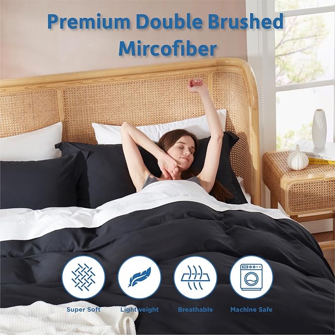- Super Soft Duvet Cover Set: Woven from durable, high-quality 110 GSM microfiber and double brushed for ultimate softness, our cooling duvet cover is lightweight, breathable, and cool to the touch — an all-season solution for serene sleep. Includes a plush 300 GSM down alternative comforter for added comfort and warmth.