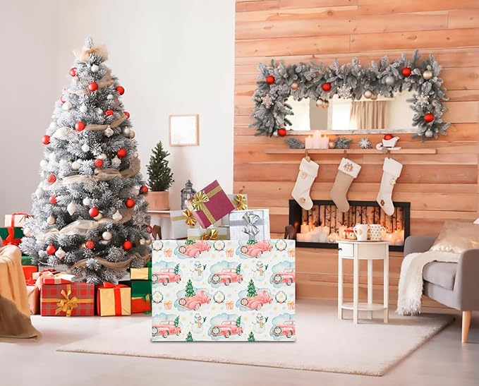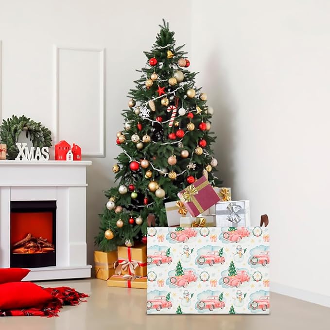 CLOCOR Rectangular Storage Basket Empty,Gift Basket,Waterproof Storage Bin with Handles,Room Decor(Christmas Gift Car)