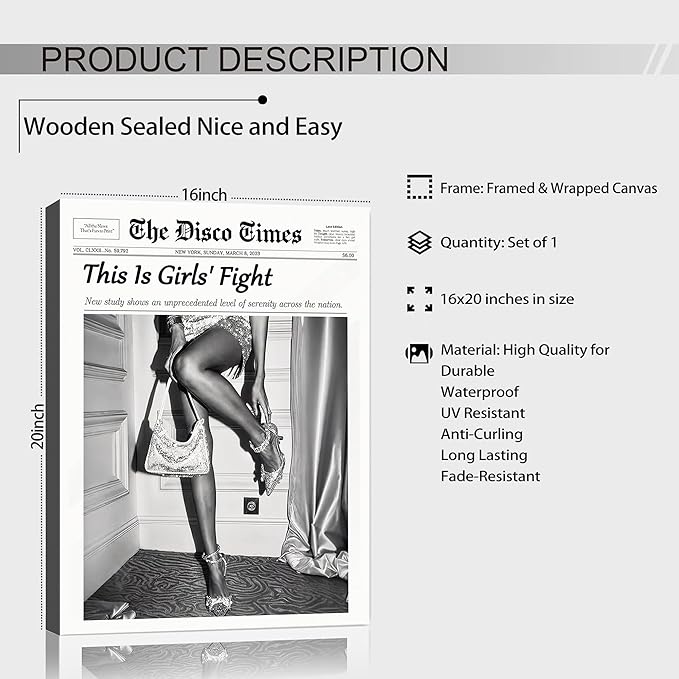- 【Elegant Wall Art】:Elevate your living space with hottaCANVANS' fashion-forward newsprint showcasing art prints. This 16x20-inch canvas art print, framed & wrapped canvasIt serves as both an intriguing conversation starter and a statement piece that showcases your personality and home decor taste.