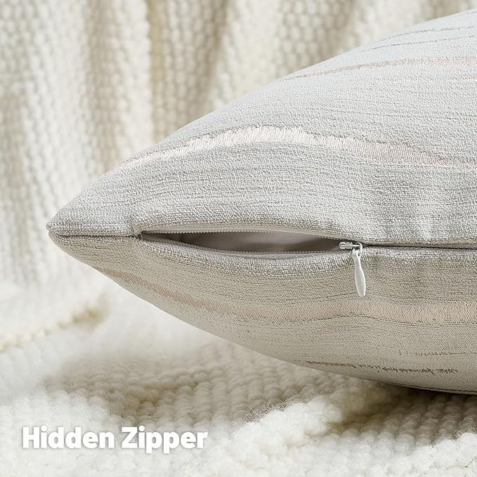 FUTEI Cream Chenille Decorative Throw Pillow Covers 24x24 Inch Set of 2,Soft Embossed Striped Textured European Cushion Case,Modern Home Decor for Couch Bed Living Room