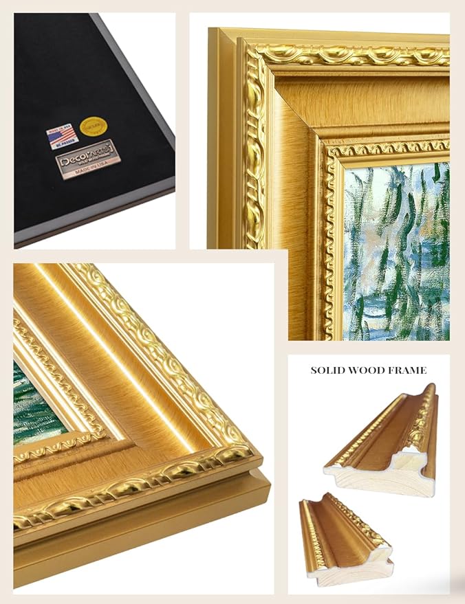 DECORARTS - Claude Monet Water Lilies 1916-1919 Giclee Print with Gold Solid Wood Frame, Impressionist Large Framed Wall Art, Ready to Hang, Framed Size 34.75x28.75, Made in USA