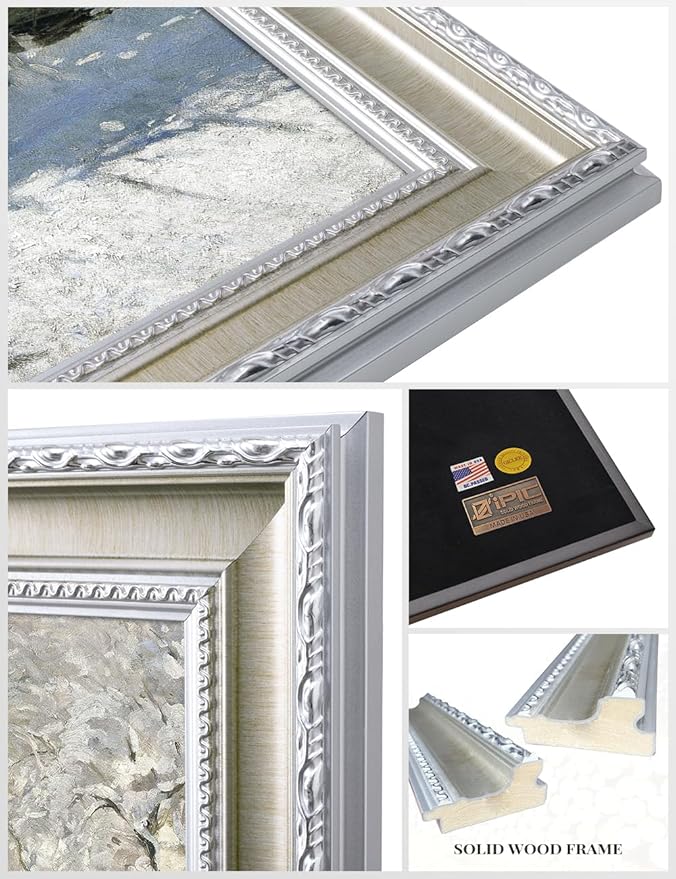 - Solid Wood Elegance - 30x24" canvas, finished size 34.75x28.75", set in a silver solid wood frame with velvet-like backing. Professionally crafted, ready to hang with gloves, level, and screws included.