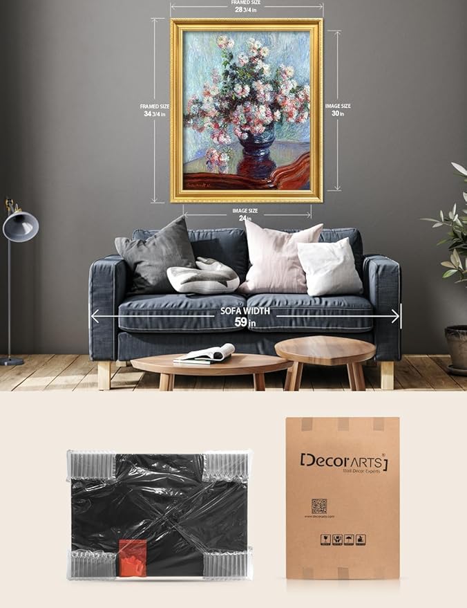 DECORARTS - Claude Monet Chrysanthemums 1882 Giclee Print with Gold Solid Wood Frame, Impressionist Large Framed Wall Art, Ready to Hang, Framed Size 28.75x34.75, Made in USA