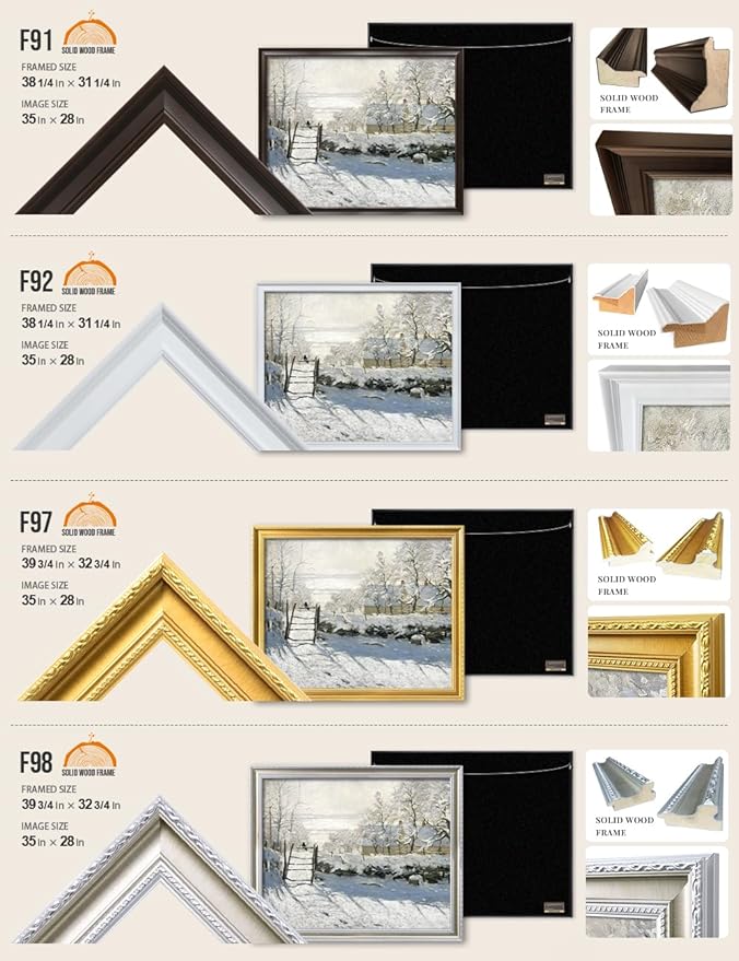 - Oversized Custom Framed Art - 35x28" Monet canvas in extra-large format. Customize your solid wood frame through Customize Now. Outer size increases about 3.25-4.75" with frame. Velvet-like backing, ready to hang with gloves, level, screws included.