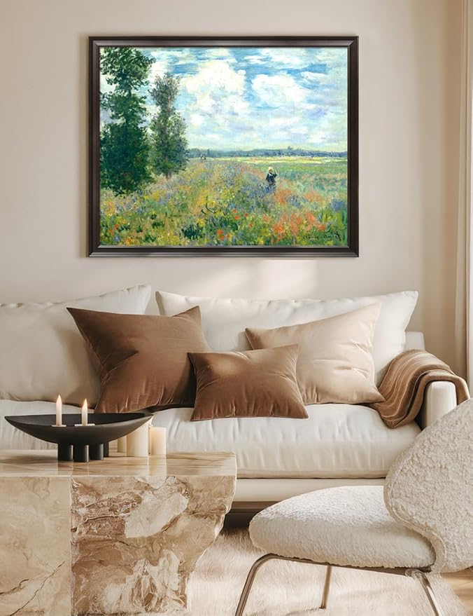DECORARTS - Claude Monet Poppy Fields Near Argenteuil, Large Framed Wall Art, Canvas Size 35x28, Outer Dimensions Larger With Customizable Solid Wood Frames, Giclee Canvas Print, Made in USA