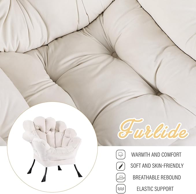 Lazy Chair, Modern Floral Reading Chair with Folding Footrest, Lounge Accent Chair, Comfortable Oversized Armchairs for Bedroom, Living Room, Courtyard, Velvet Beige
