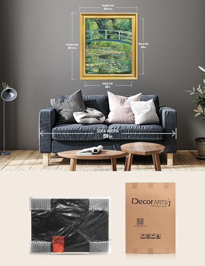 DECORARTS - Claude Monet The Japanese Bridge Giclee Print with Gold Solid Wood Frame, Impressionist Large Framed Wall Art, Ready to Hang, Framed Size 28.75x34.75, Made in USA