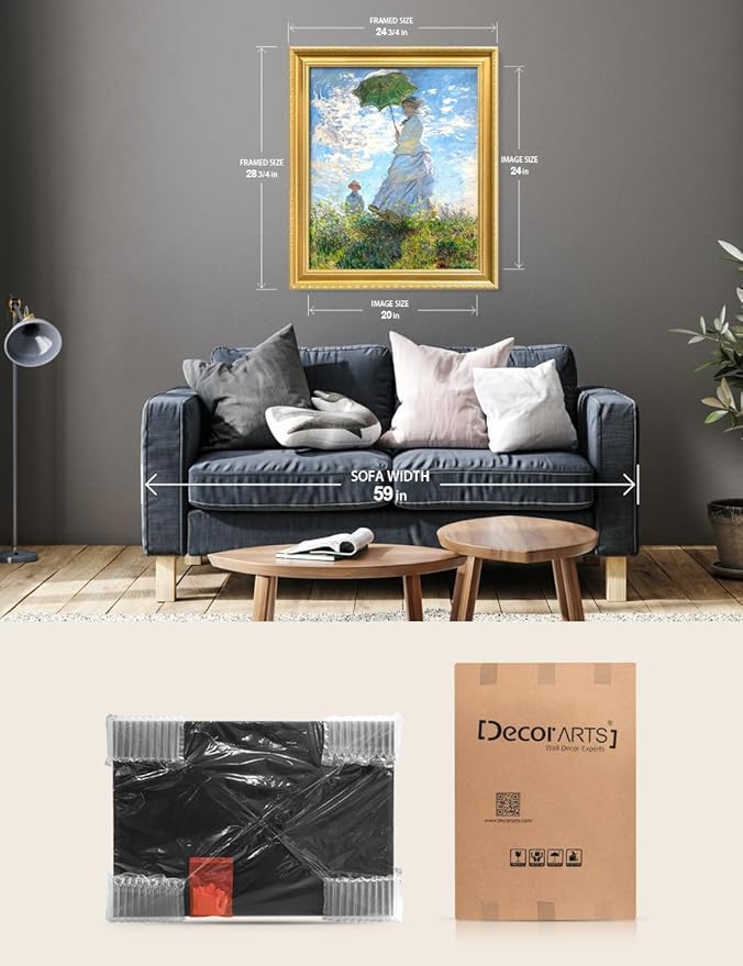 DECORARTS - Claude Monet Woman With A Parasol Giclee Print with Gold Solid Wood Frame, Impressionist Large Framed Wall Art, Ready to Hang, Framed Size 24.75x28.75, Made in USA