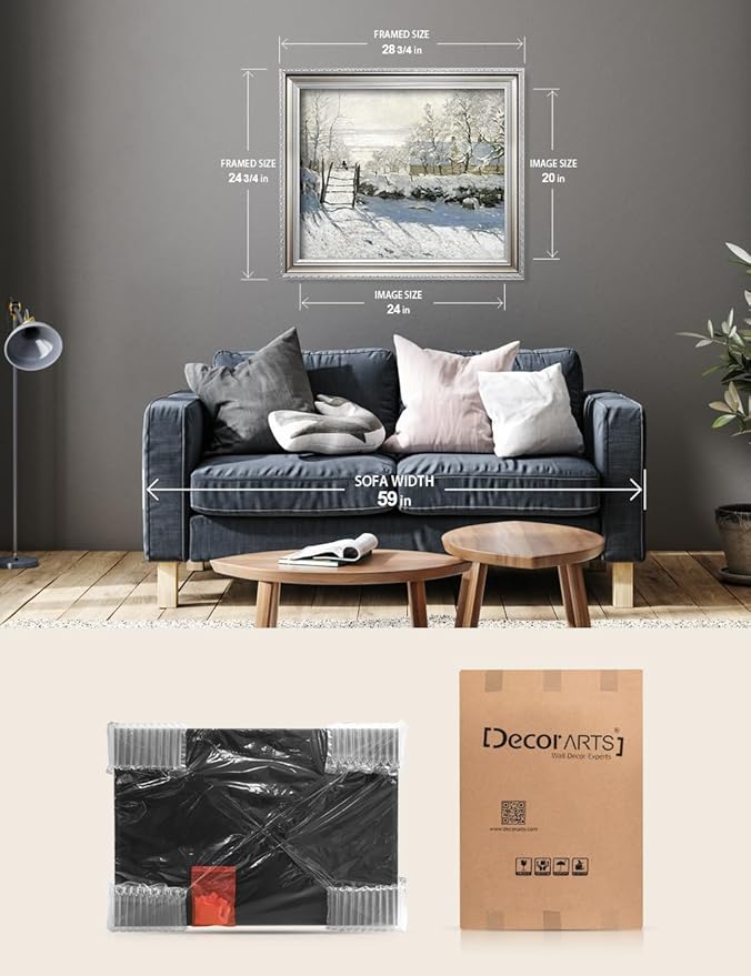 DECORARTS - Claude Monet The Magpie Giclee Print with Silver Solid Wood Frame, Impressionist Large Framed Wall Art, Ready to Hang, Framed Size28.75x24.75, Made in USA