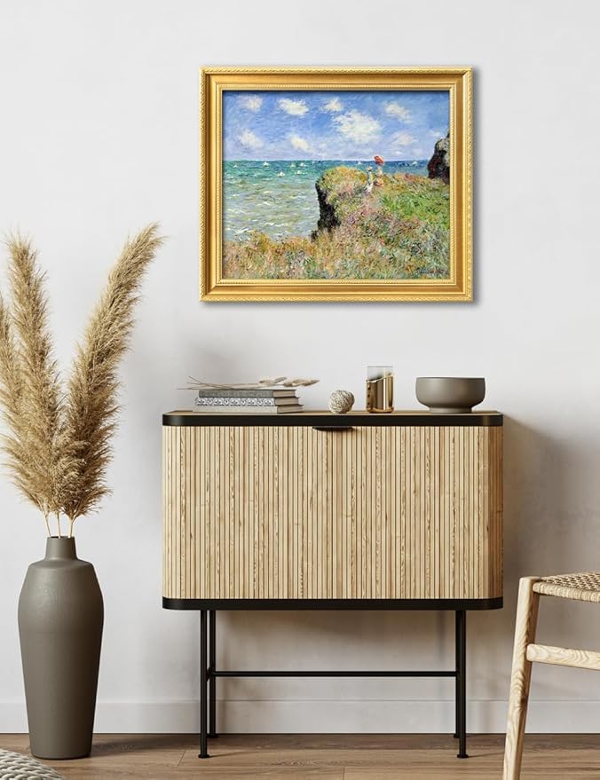 DECORARTS - Claude Monet The Cliff Walk At Pourville Giclee Print with Gold Solid Wood Frame, Impressionist Large Framed Wall Art, Ready to Hang, Framed Size28.75x24.75, Made in USA