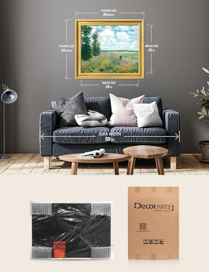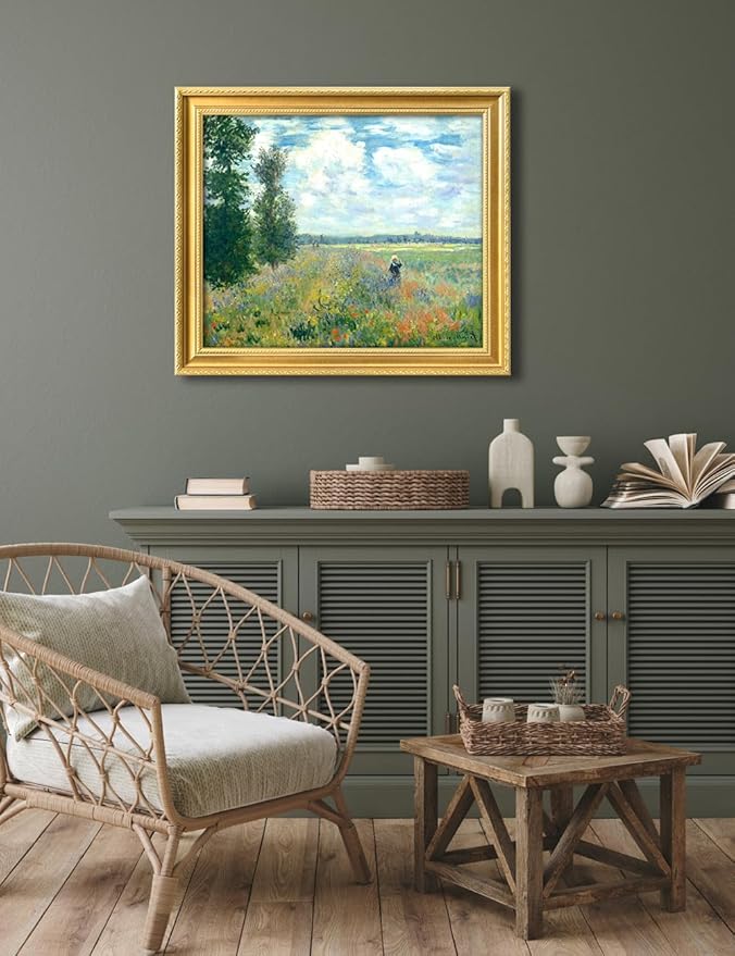 DECORARTS - Claude Monet Poppy Fields Near Argenteuil Giclee Print with Gold Solid Wood Frame, Impressionist Large Framed Wall Art, Ready to Hang, Framed Size28.75x24.75, Made in USA