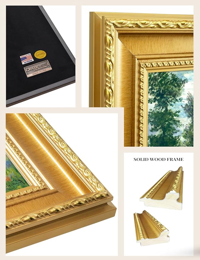 - Solid Wood Elegance - 24x20" canvas, finished size 28.75x24.75", set in a gold solid wood frame with velvet-like backing. Professionally crafted, ready to hang with gloves, level, and screws included.
