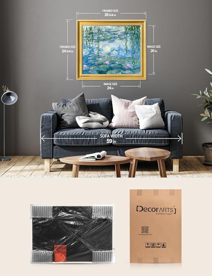 DECORARTS - Claude Monet Water Lilies 1916-1919 Giclee Print with Gold Solid Wood Frame, Impressionist Large Framed Wall Art, Ready to Hang, Framed Size28.75x24.75, Made in USA